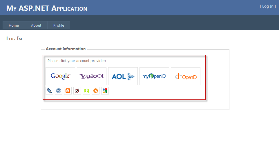 To start with, I will integrate the OpenID Selector into the Login.aspx page, you can check in the figure below how it will look like once added: